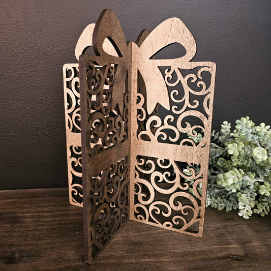 3D Gift Box Christmas Decor Table Filler: Natural/No Stain / 4" high